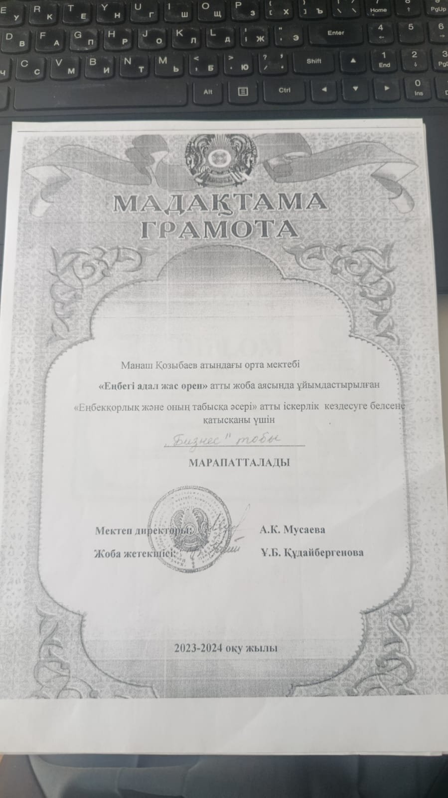 "Еңбегі адал жас өрен" мадақтама » СШ № 39
