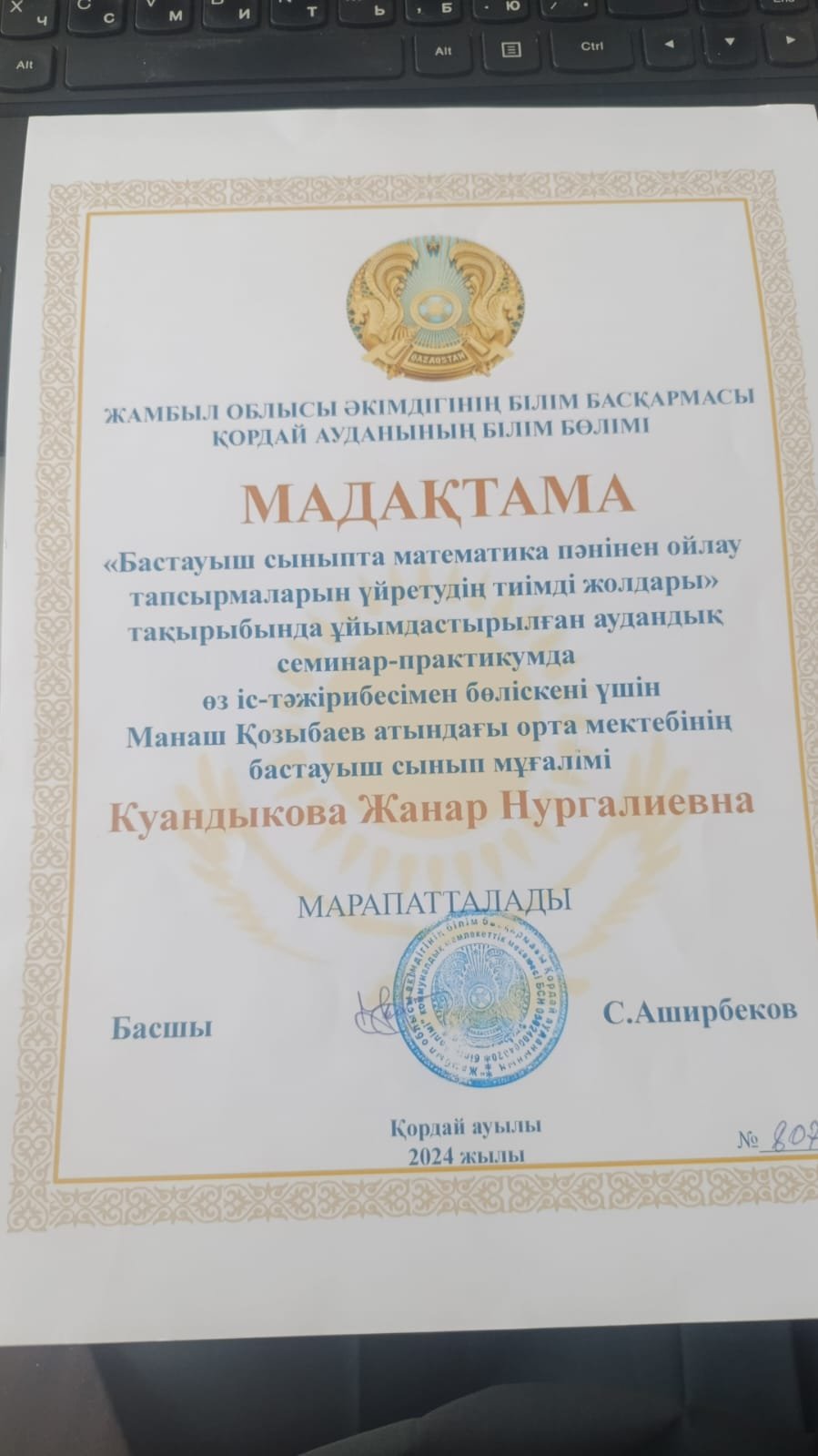 06 февраль 2024 0 1 2 3 4 5 "Бастауыш сыныпта математика пәнінен ойлау тапсырмаларын үйретудің тиімді жолдары" мадақтама