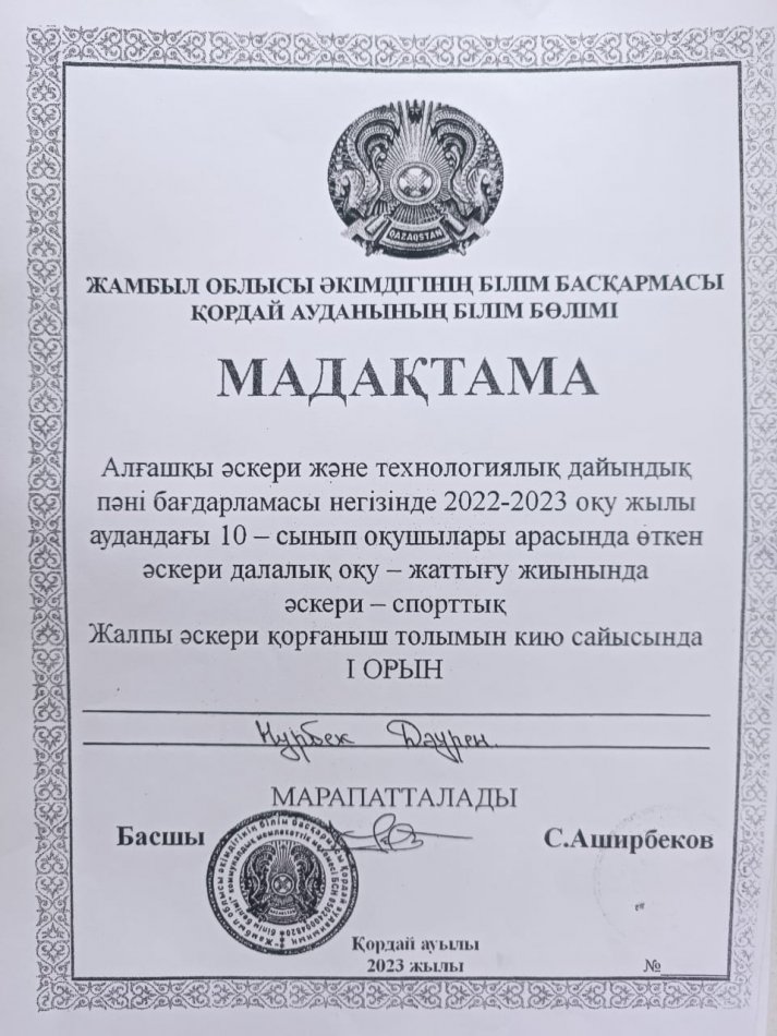 » » » "Алғашқы әскери және технологиялық дайындық" мадақтама