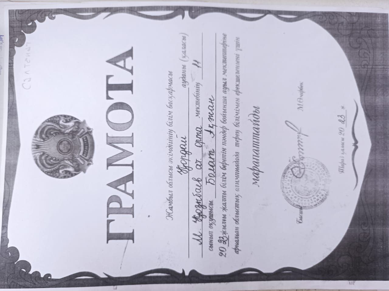 » » » Облыстық олимпиядада терең білімімен ерекшеленгені үшін