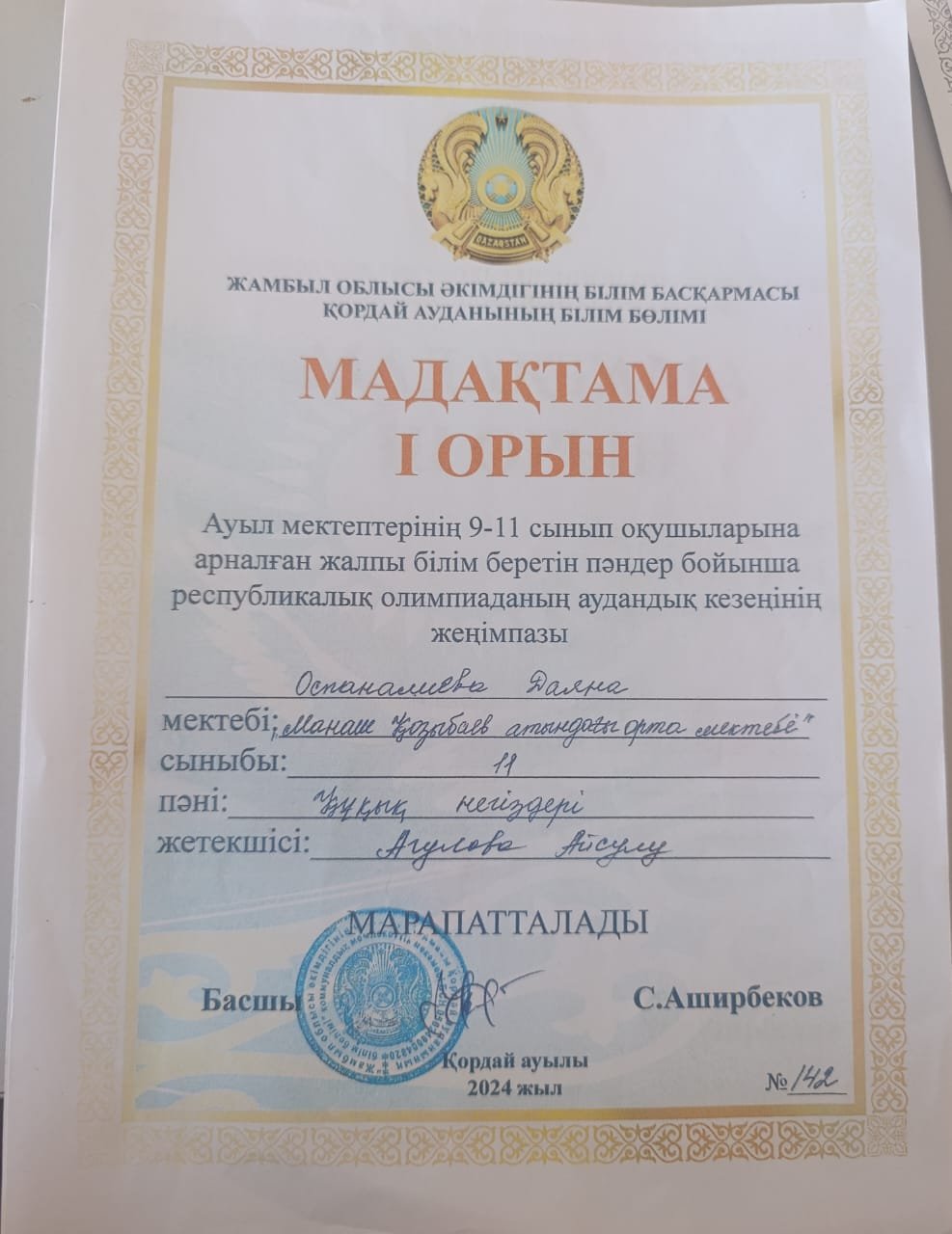 Оқу бөлімі: